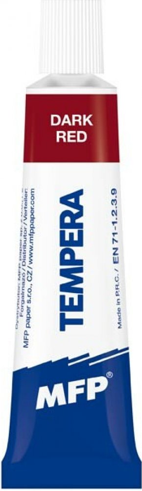 Temperová barva MFP kusová - tmavě červená. Namalujte si s dětmi obrázek pomocí temperových barev, které vynikají jasnou barevností. Děti můžou malovat štětcem, ale i prsty.- vysoké krycí vlastnosti- žádné toxické látky- pro školní a hobby použití- tempera je v hliníkové tuběBarva: černáObsah barvy v jedné tubě: 12 mlVAROVÁNÍ:Nevhodné pro děti do 3 let.Nebezpečí spolknutí malých částí.EN71 - 1,2,3...