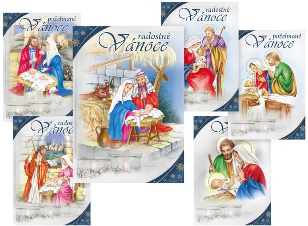 Pohlednice s vánočním motivem. Text na zadní straně obsahují 3 pohlednice z 6. Text na přední straně: Radostné Vánoce, Požehnané Vánoce Text na zadní straně: Pohlednice 1: Vánoční svátky prožité v pokoji a radosti z Ježíšova narození přeje Pohlednice 2: Pokojné vánoční svátky a požehnaný nový rok plný radosti a štěstí přeje Pohlednice 3: Pokojné vánoční svátky a požehnaný nový rok plný radosti a štěstí přeje Povrchová úprava: bez úpravy Papír: pohlednicový karton 240 g Uvedená cena je za 1 ks. Rozměr: 105mm x 148mm x 1mm (Š x V x H) Uvedená cena je za 1 ks. Rozměr: 105mm x 148mm x 1mm (Š x V x H)
