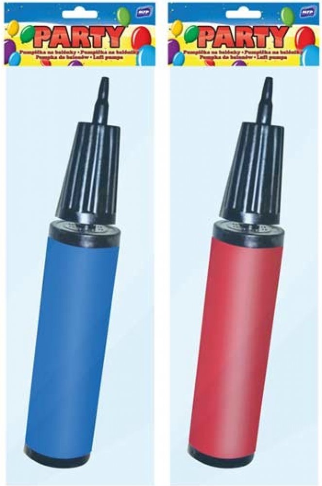 Plastová pumpička na nafukovací balónky. Udělejte si parádní párty výzdobu s nafukovacími balonky, čím více balonků, tím lépe. Nebojte se, nafukování bude hračka s jednoduchou, mechanickou pumpičkou.Varování: Nevhodné pro děti do 3 let. Děti se mohou prasklými či vyfouknutými balónky zadusit nebo uškrtit. Používejte pouze pod dozorem dospělé osoby. Dospělá osoba se po nafouknutí balónku musí přesvědčit, že jej děti používají bezpečně. Vyfouklé balónky udržujte mimo dosah dětí a prasklé ihned zlikvidujte. K nafukování balónků použíjte pumpičku. Nepřibližujte balónky k očím a obličeji. Při prasknutí může balónek způsobit zranění. Vyrobeno z přírodního kaučuku, latexu. Určeno k dekorativním účelům.Dodáváme v mixu 2 barev dle skladové zásoby.Uvedená cena je za 1 ks.