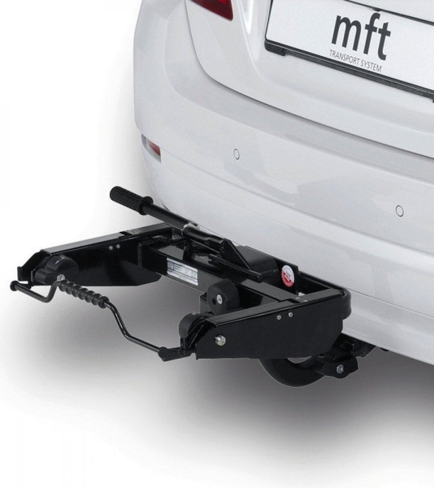 MFT 1201 BackCarrier MFT 1201 nosný modul Euro-Select XT je základna pro uchycení zadního boxu MFT Back Box a nosiče kol BackPower. Montáž se provádí bez použití nářadí, pouze stlačením páky, zašroubováním otočné zamykatelné růžice dojde zajištění páky a tím k zajištění nosiče proti krádeži. Pro dotažení na čep TZ slouží otočná klička. Na obou bocích základny jsou otočné bajonetové uzamykatelné mechanismy pro velmi rychlé a bezpečné nasazení boxu. Nosič s boxem Euro-Select lze použít také na vozidla s velmi rozměrnými pátými dveřmi - např. VW Transporter T4 a T5 nebo Mercedes Viano, odklápění se odjistí přitáhnutím madla k sobě. Specifikace: Uzamykatelné: ano Testováno TÜV a/nebo GS: ano Nosnost: 82,5 kg Hmotnost: 8 kg