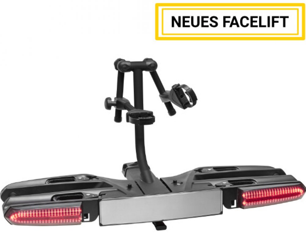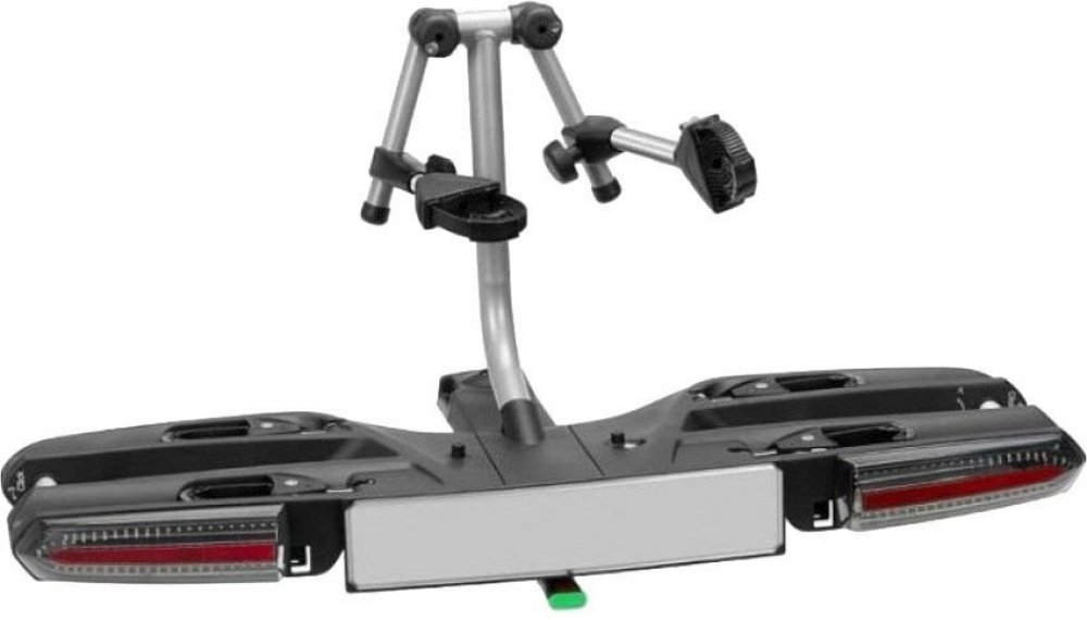 Kompaktní, skládací nosič 2 kol compact 2e+1 od firmy MFT s LED světelnou rampou. Rychlé a snadné automatické upevnění nosiče na kulový čep. Kompletně uzamykatelný, vybavený držákem registrační značky. Jednoduše sklopný pro snadný přístup do kufru vozu i s naloženými koly a skladný pro úsporu místa při jeho skladování. Vysoká nosnost až 60 kg umožňuje přepravu elektrokol. LED osvětlení podtrhává m...