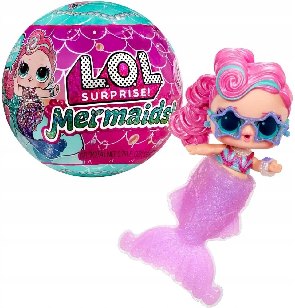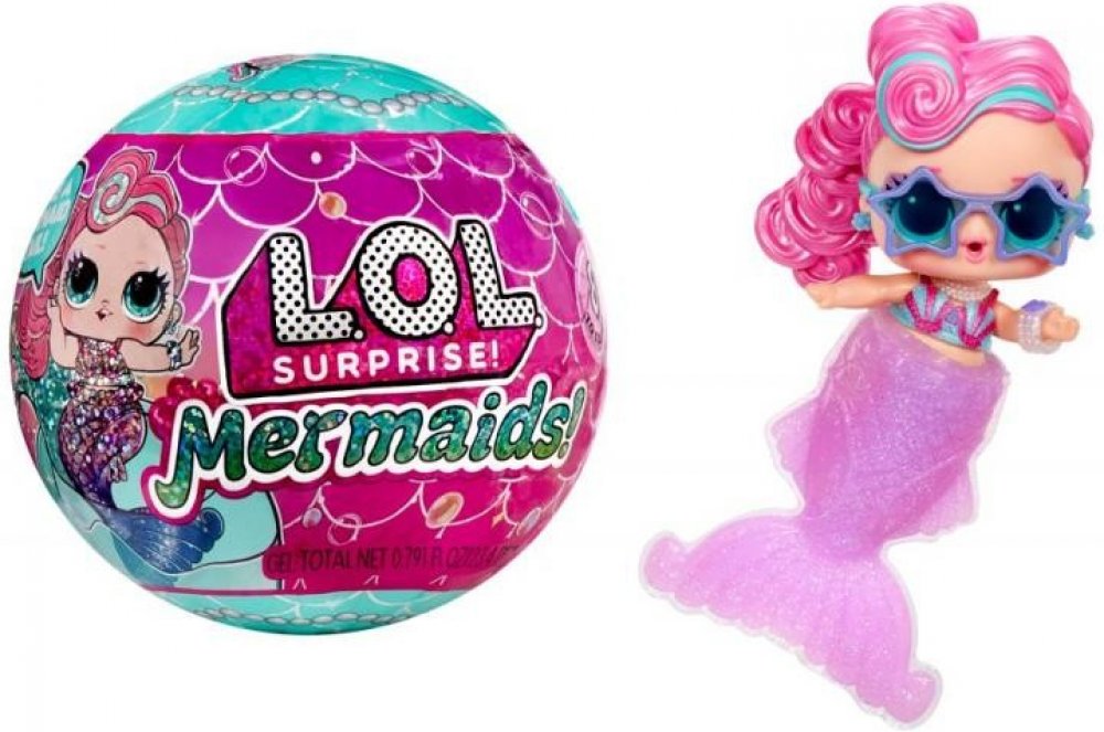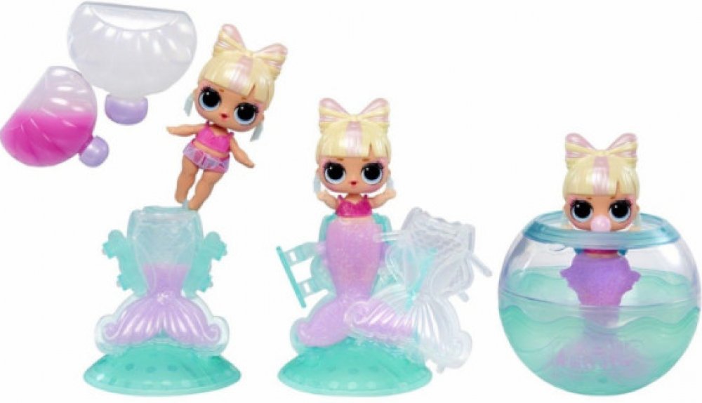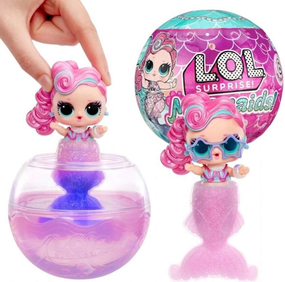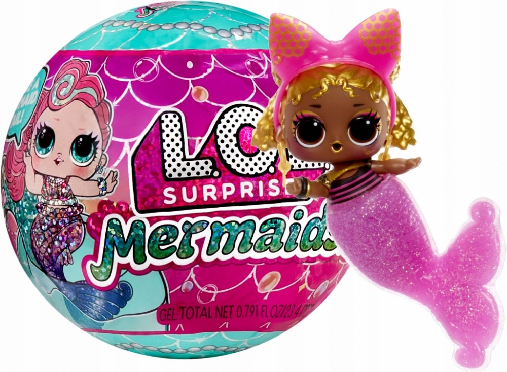 Udělej ze své L.O.L. panenky mořskou pannu! Jednoduše nalej ingredience do formy na ploutev a nech je ztuhnout v připravené vodě s ustalovačem v kouli od panenky. Panenka tak získá barevnou ploutev. Díky této formě můžeš udělat mořskou pannu z jakékoli L.O.L. panenky. Obal slouží jako stojánek pro mořskou pannu. Celkem můžedš posbírat 8 různých panenek.