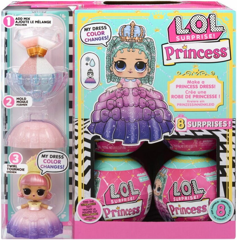 Odhal, kterou princeznu máš skrytou v míčku a vyrob její sukni. Smíchej přísady, nech ztvrdnout a už jen sleduj, jak se změní barva sukně v závislosti na teplotě vody. Balení obsahuje 1 panenku, 1 módní doplněk, 1 pár bot, gel pro tvorbu sukně a další doplňky. Velikost koule 10 cm.
