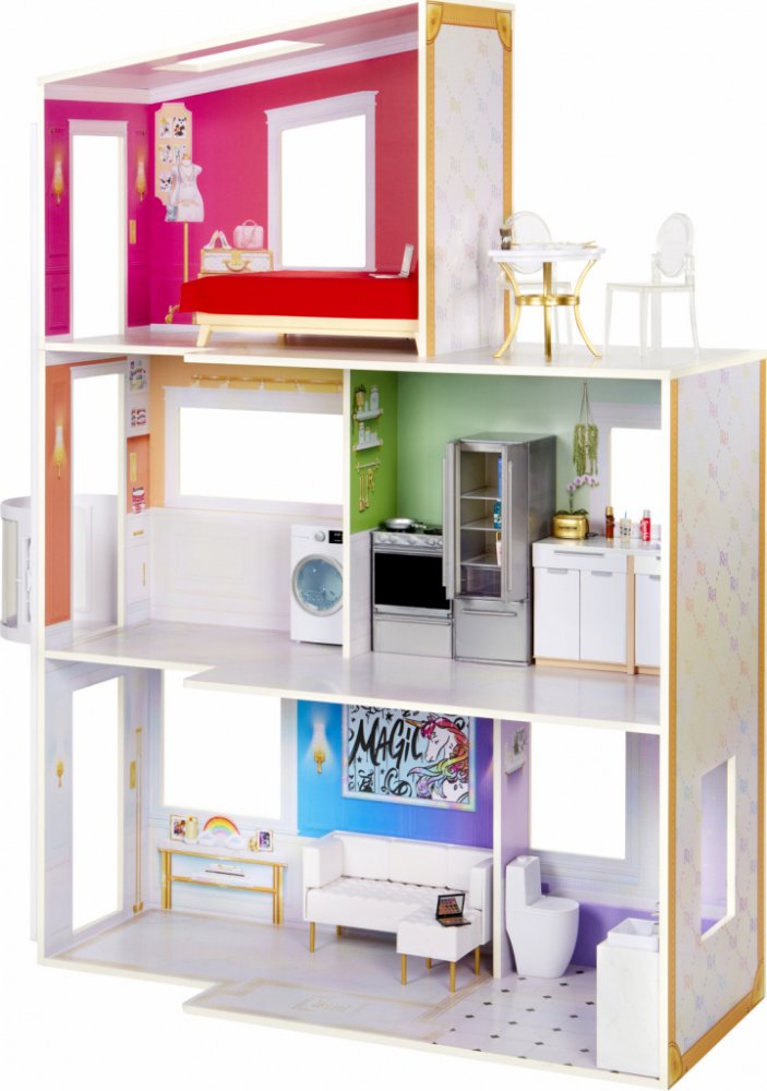 Na této luxusní Studentské koleji bydlí s radostí každá panenka, která má to štěstí, že se dostala do pohádkového domu Rainbow High. Tento 1,2 metru vysoký dům má výtah, koupelnu se sprchou a umyvadlem, vířivku a pračku. Najdete v něm i nepostradatelné příslušenství všech studentů, jako jsou notebooky, palety na líčení, ale i nádobí atp.
