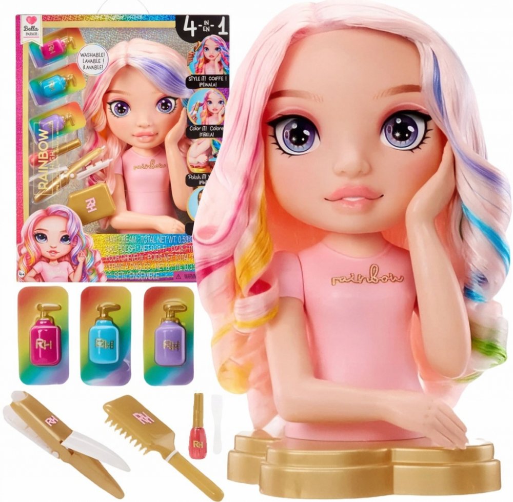 Rainbow High inspiruje kreativitu ve všem, co děláme. Představujeme naši první sadu Rainbow High stylingové hlavy 4 v 1, která obsahuje naši nejprodávanější a fanoušky oblíbenou postavu Bellu.