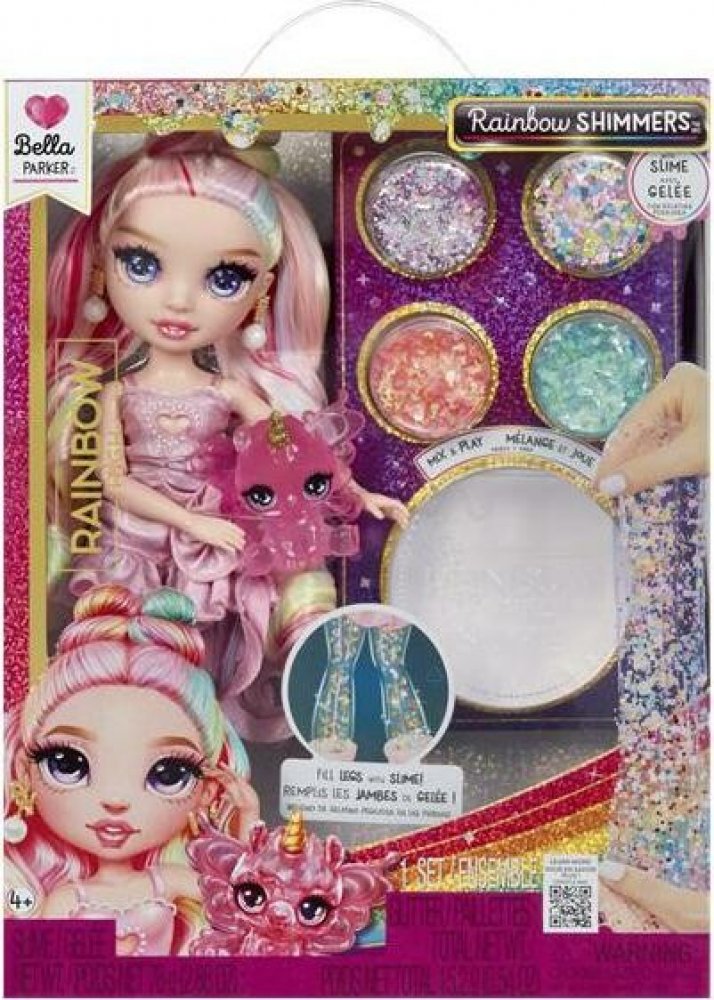 Rainbow High panenky jsou ještě kouzelnější! Společně se svými malými sestřičkami objevují nový svět, nové outfity a zcela nový způsob hraní. Každá panenka přichází s průhledným slizem a čtyřmi druhy třpytek. Třpytky přidej do slizu a uprav ho podle své fantazie. Poté sliz dej do průhledných nohou panenky a sleduj, jak se její nohy promění! Je to tak snadné! Sundej zadní část nohou, přidej sliz, zacvakni nohy zpět a můžeš si hned hrát! A to nejlepší? Můžeš to dělat znovu a znovu. Nebo můžeš třpytky a sliz kombinovat mezi různými panenkami.Obsah balení: • 1 ze 4 panenek s dlouhými vlásky a 5 klouby • 1 outfit, 1 pár bot, 1 pár náušnic • průhledný sliz • 4 druhy třpytek • 1 kouzelný mazlíček