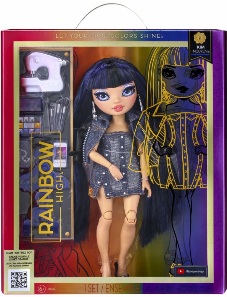 Představuje Vám novou 5. sérii Rainbow High Fashion panenek. Kim Nguyen je skvělá švadlena. Sama je od hlavy až k patě oblečená v džínové modré.