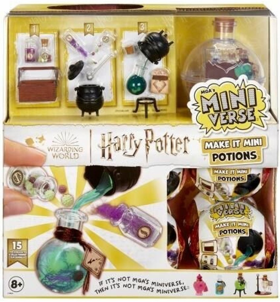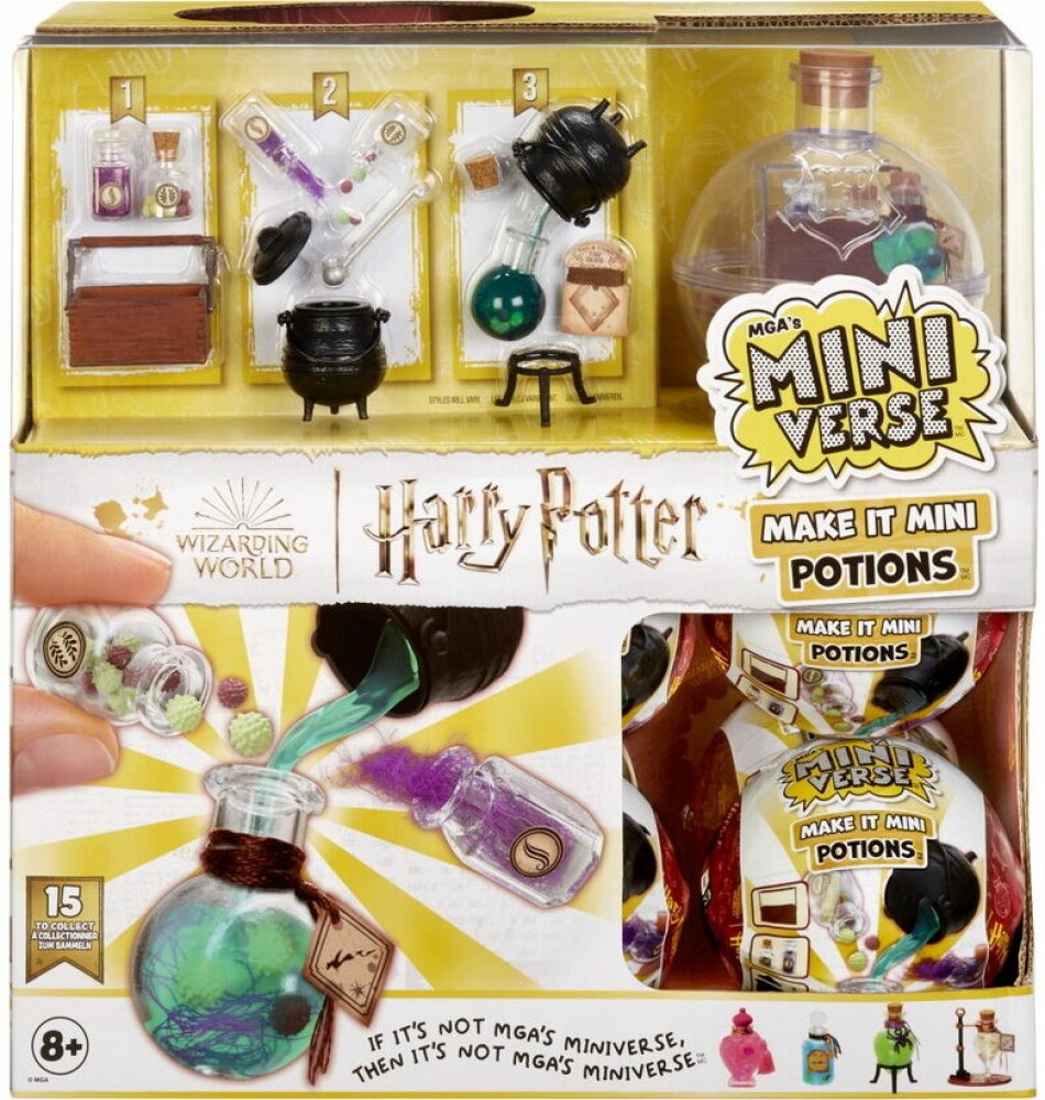 MGA‘s Miniverse se spojilo s Warner Brothers a přináší mini kouzla, lektvary a pomůcky z Harryho Pottera ve formě mini replik. Miniaturní, ale i přesto s neuvěřitelně realistickými detaily! Vyrobíš je z ingrediencí ve tvém balíčku, pak vše necháš alespoň 5 minut na přímém slunci vytvrdnout nebo na ně zasvítíš UV lampičkou a můžeš vystavovat!