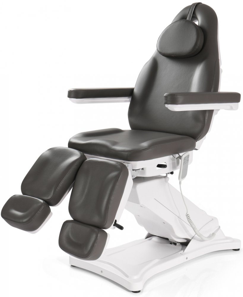 Pedikérské křeslo s elektricky nastavitelnou výškou a zádovou opěrou.