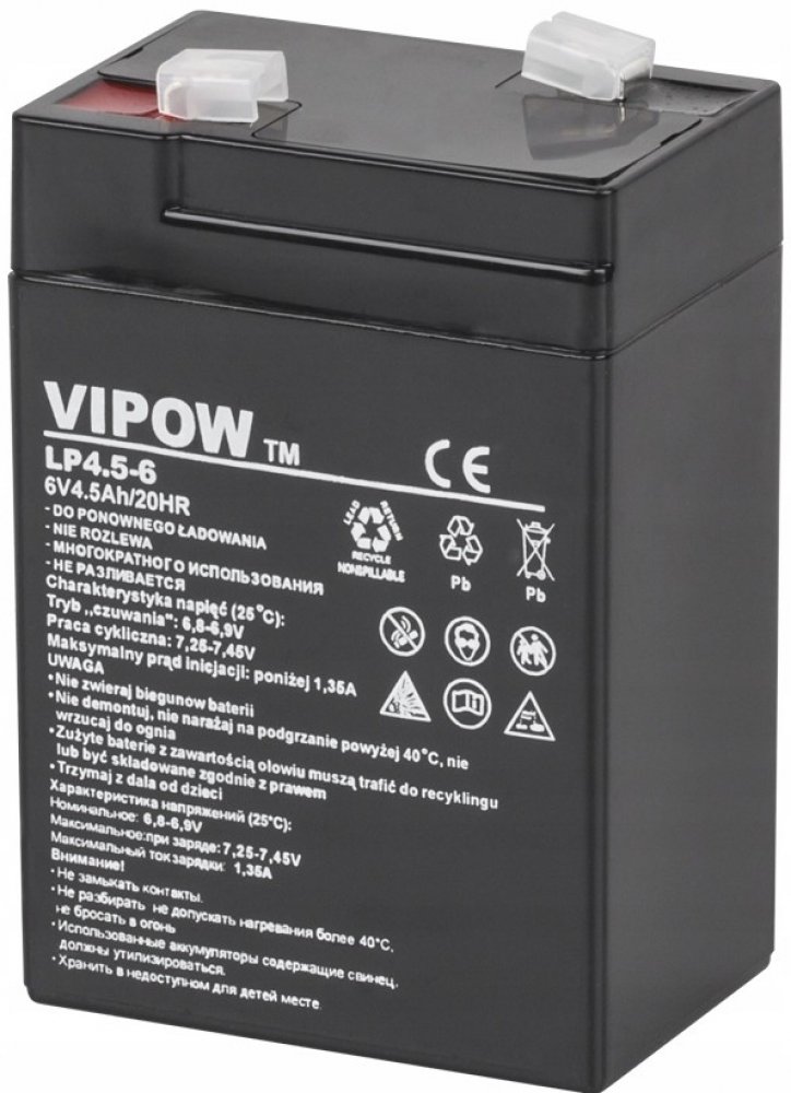 VLASTNOSTI PRODUKTU Akumulátor AGM Vipow 6V 4,5Ah