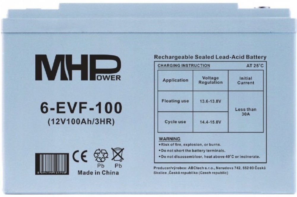Trakční gelová baterie MHPower 6-EVF-100 je spolehlivým zdrojem energie navrženým pro náročné aplikace, které vyžadují hluboké cykly nabíjení a vybíjení. S kapacitou 100Ah a napětím 12V je ideální pro napájení elektrických vozidel, golfových vozíků, solárních systémů, nebo jako záložní zdroj energie. Díky gelové technologii je odolná vůči vibracím, nevyžaduje údržbu a má delší životnost než tradiční olověné baterie. Baterie je optimalizována pro hluboké cykly (Deep Cycle), což z ní činí ideální volbu pro aplikace s vysokou cyklickou zátěží.