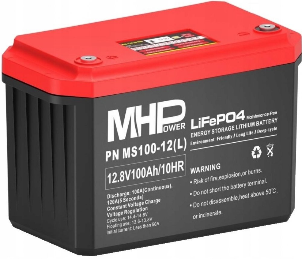 Baterie MHPower MS100-12(L) je odolnější a lehčí alternativa k olověným akumulátorům. Tato lithium-železo-fosfátová baterie má výjimečně dlouhou životnost, skvělou účinnost proudu a rychlost nabíjení. Baterii MHPower použijete k napájení rekreačních vozidel, karavanů, lodí, fotovoltaiky i k zásobování vašeho domu energií pomocí solárních panelů.