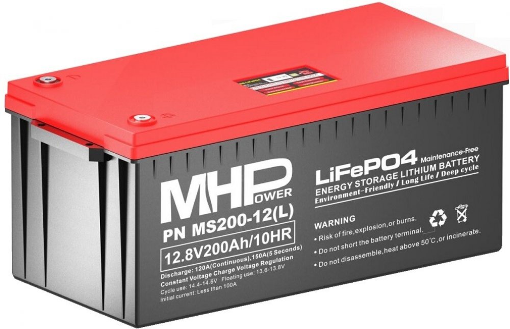 Lithium-železo-fosfátová baterie (LiFePO4) se vyznačuje výjimečnou životností, kapacitní stabilitou a rychlostí nabíjení. Jedna z hlavních předností je velmi nízká hmotnost, zhruba 30% hmotnosti oproti olověným bateriím.Baterie LiFePO4 si zachovají více než 80% své kapacity i po 2 000 nabíjecích cyklech. Díky nízkému samovybíjení bude baterie plně funkční i po jednom roce nepoužívání.Díky své vysoké životnosti, nízké hmotnosti a nabíjecím parametrům se baterie používají v rekreačních vozidlech, karavanech, lodích nebo při napájení domů v kombinaci s fotovoltaikou.LiFePO4 baterie MHPower jsou osazeny integrovaným BMS (Battery Management System), který řídí procesy vybíjení a nabíjení. Pokud se během nabíjení nebo vybíjení objeví nějaký problém, BMS okamžitě zasáhne a upraví parametry nabíjení/vybíjení nebo jej zcela přeruší. Není tedy nutná žádná dodatečná BMS.Naše lithiové baterie MHPower jsme nechali zátěžovými testy otestovat na Elektrotechnické fakultě ČVUT v Praze, kde se potvrdila jejich neuvěřitelná robustnost a stabilita. Využitelná kapacita těchto baterií je minimálně 94%. Samovybíjení pouze kolem 2-3% kapacity za rok! Není tedy nutné pravidelně před a po sezoně baterii dobíjet.Bezpečnost: LiFePO4 mají extrémně stabilní chemické složení a jsou bezpečné. LiFePO4 jsou NEHOŘLAVÉ! Nedojde k explozi nebo vzplanutí při nárazu v případě přebití nebo zkratu.Klíčové vlastnosti- Standardní a maximální nabíjecí proud: 40/max. 100A- Standardní a maximální vybíjecí proud: 50/max. 120A- Kapacita baterie: 200Ah- Stupeň krytí: IP55- Počet provozních cyklů: 3000 až 9600- LED displej: ANONapájení:Max. nabíjecí proud (A): 100Optimální nabíjecí proud (A): 40Fyzické charakteristikyProvozní teplota [°C]: 0 až 60Hmotnost [kg]: 18,5Šířka [mm]: 484Výška [mm]: 239Výška s konektory [mm]: 241Hloubka [mm]: 170Informace k produktu:LiFePO4 akumulátory jsou typem lithium-iontových baterií, které mají mnoho výhod, jako je vysoká kapacita, dlouhá životnost, bezpečnost a odolnost. Nicméně, stejně jako ostatní lithium-iontové baterie, mají také některé nevýhody, mezi které patří snížený výkon při nízkých teplotách.Při záporných teplotách nebo při mrazu dochází k několika nepříznivým jevům, které ovlivňují funkci LiFePO4 akumulátorů. Mezi ně patří:• Zpomalení iontové difúze v elektrolytu a elektrodách. Tím se snižuje rychlost chemických reakcí, které generují elektrický proud. To znamená, že baterie má nižší kapacitu a výkon při vybíjení a nižší účinnost při nabíjení.• Zvýšení vnitřního odporu baterie. To způsobuje ztrátu energie ve formě tepla a snižuje napětí baterie. To omezuje maximální proud, který lze z baterie odebírat nebo do ní dodávat.• Riziko poškození baterie. Pokud je baterie nabíjena při teplotách pod 0 °C, může dojít k tvorbě litiových dendritů na anodě. To jsou ostré krystaly lithia, které mohou propíchnout separátor mezi elektrodami a způsobit zkrat nebo požár. Proto je doporučeno nabíjet LiFePO4 akumulátory pouze při teplotách nad 0 °C.Z těchto důvodů je vhodné provozovat LiFePO4 akumulátory v teplotním rozmezí od 0 °C do 60 °C, aby se zajistil optimální výkon a životnost. Při nižších teplotách je nutné chránit baterii před mrazem a nabíjet ji opatrně.