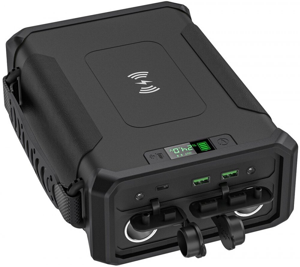 Powerbanka disponuje celkem 6 výstupy, abyste mohli současně nabíjet více zařízení. Ve výbavě outdoorové powerbanky je USB-A, USB-C, DC jack a cigaretové zásuvky 12 V/ 15 A. O přehled stavu powerbanky a průběhu nabíjení budete informování prostřednictvím LED displeje. V powerbance je zabudované LED světlo, které poslouží jako baterka a nebo nouzové osvětlení při kempování.