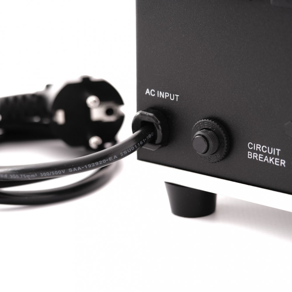 POZOR! Záložní zdroj (UPS) funguje pouze tehdy, když je připojen k externí baterii. Neměl by být používán bez připojení baterie. Po připojení akumulátoru, zapojte hlavní napájecí kabel do zásuvky (230V, 50 Hz) s uzemněním do sítě. Na zadní straně zdroje připojíte zařízení, které chcete, aby fungovalo při výpadku napájení. Postupujte podle následujícího pořadí: připojte baterii, připojte hlavní napájení a potom připojte spotřebič (zařízení) k záložnímu zdroji (UPS). Pro zapnutí nebo vypnutí AC zátěže (zásuvek pro spotřebič), tak stiskněte a podržte tlačítko napájení (ON / OFF) pod dobu cca 2 sekund.