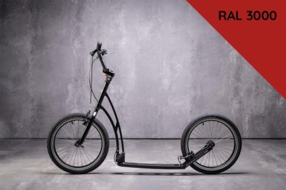 Skládací ocelový rám - celomatný lak rám RAL 3000 (Fire Red) + vidlice RAL 9005 (černá)