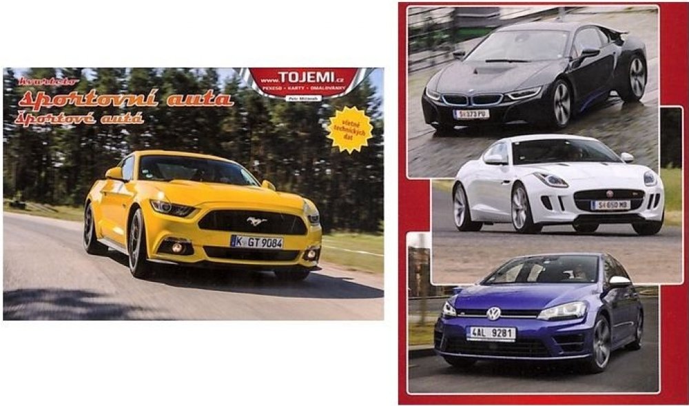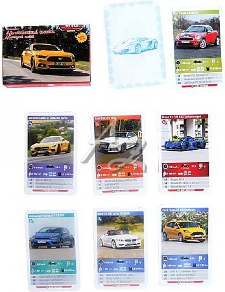 Karty pro oblíbenou dětskou hru kvarteto s motivem sportovních vozů.