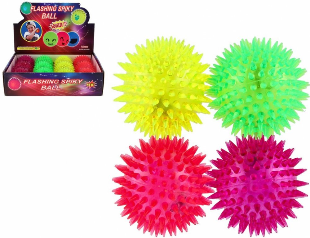 Míček svítící a pískací plast 7cm na baterie v sáčku 12ks v boxu
