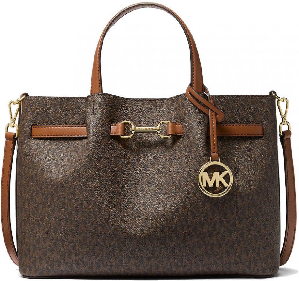 Michael Kors Carson Medium Signature Logo Satchel Brown