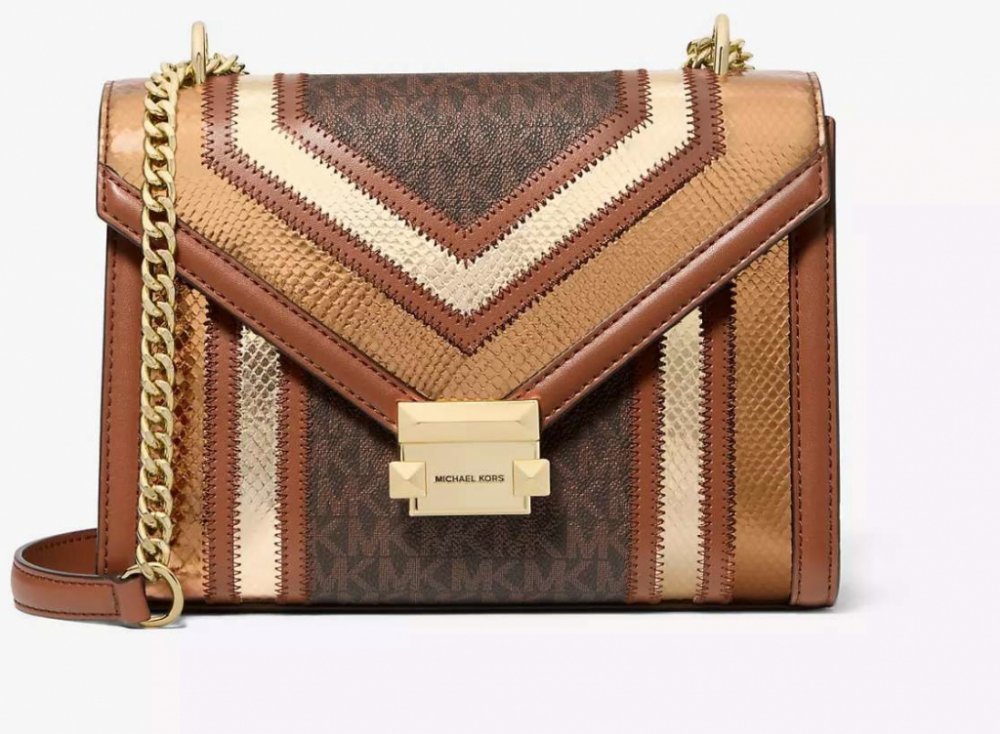 Luxusní kabelka přes rameno Whitney s potiskem loga je vhodná pro každodenní nošení i večerní vycházky a je ozdobená dvoubarevným kovovým lemem s hadím reliéfem. Nastavitelný řetízkový popruh.