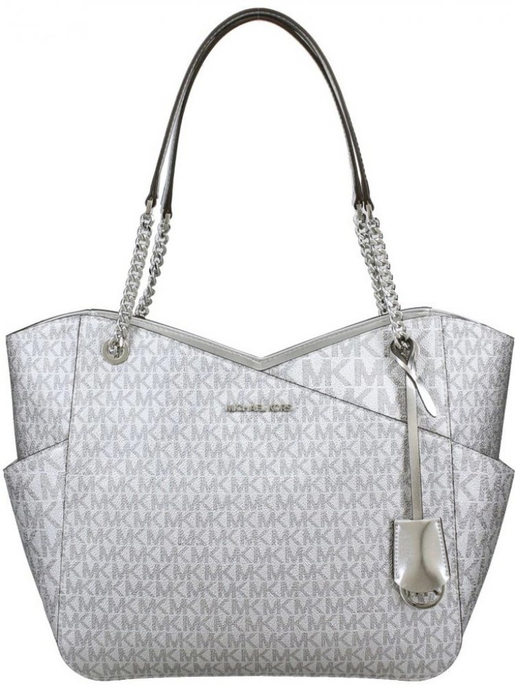 Michael Kors dámská kabelka Jet Set Large Logo Shoulder Bag stříbrná