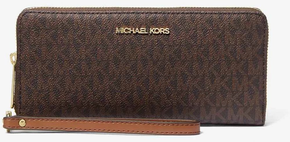 Náramková peněženka Jet Set Travel s čistou siluetou je potištěna iniciálami loga MK, které jí dodávají osobitý nádech. Vnitřní kapsa je vybavena tak, aby se do ní vešly nejpoužívanější karty a účtenky, a zapínání na zip jí dodává pragmatický nádech.