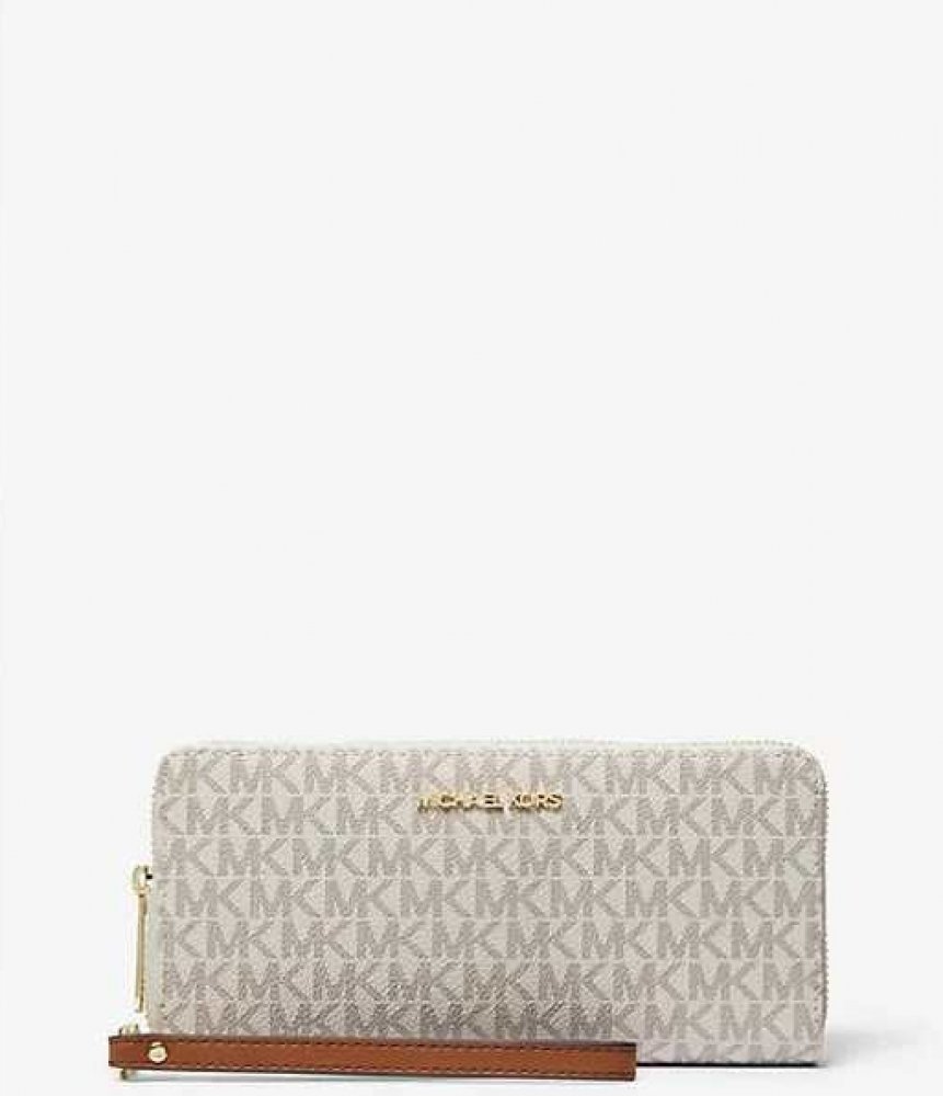 Náramková peněženka Jet Set Travel s čistou siluetou je potištěna iniciálami loga MK, které jí dodávají osobitý nádech. Vnitřní kapsa je vybavena tak, aby se do ní vešly nejpoužívanější karty a účtenky, a zapínání na zip jí dodává pragmatický nádech.