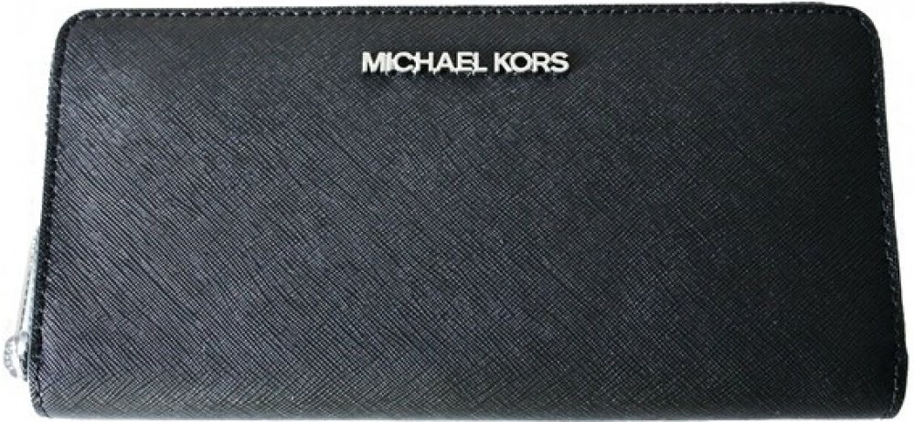 Prostorná a velmi praktická peněženka Michael Kors ozdobená embosovaným nápisem Michael Kors v krásné luxusní černé barvě