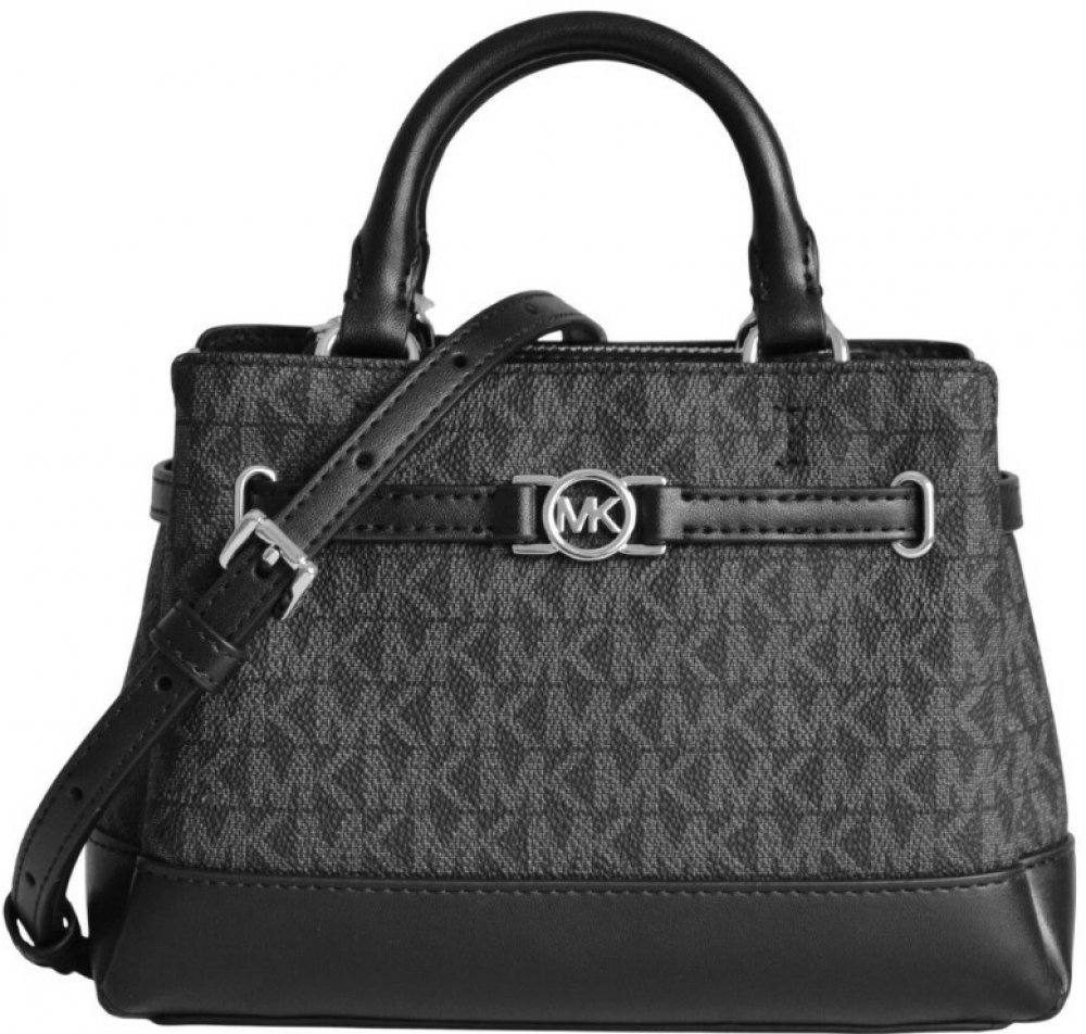 Kabelka je z kvalitní umělé kůže. Kovy jsou ve stříbrném tónu. MK iniciály v kovovém oválku na přední straně.