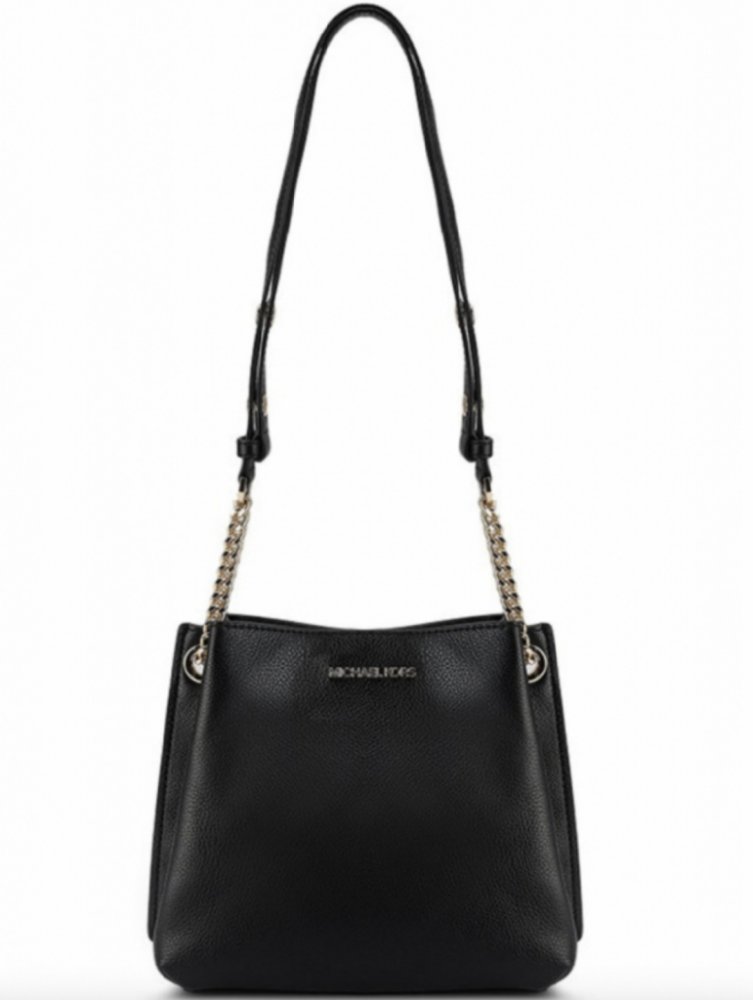 Popruh ja nastavitelný, částečně řetízkový, lze tak kabelku nosit přes rameno nebo jako crosssbody.