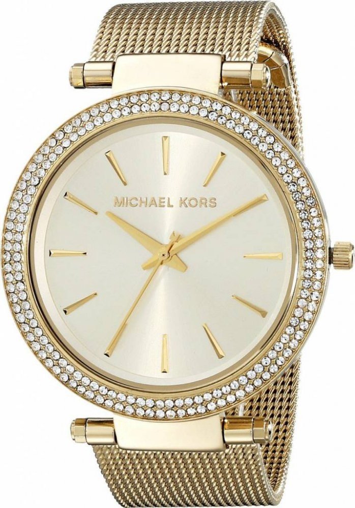 Michael Kors analogové ocel elegantní dámské bateriové - quartz pro běžné použití (30–50 m) 39.0 mm ocel 39 x 39 x 8 mm 50 m bateriové 64 g minerální krystaly Darci kulaté zlatá zlatá motýlková spona 1.8 cm na ruku bez číslic zlatá ocel 3.9 cm střední 18.0 mm 8 mm s nenáročnou údržbou (quartz) bez chytrých funkcí