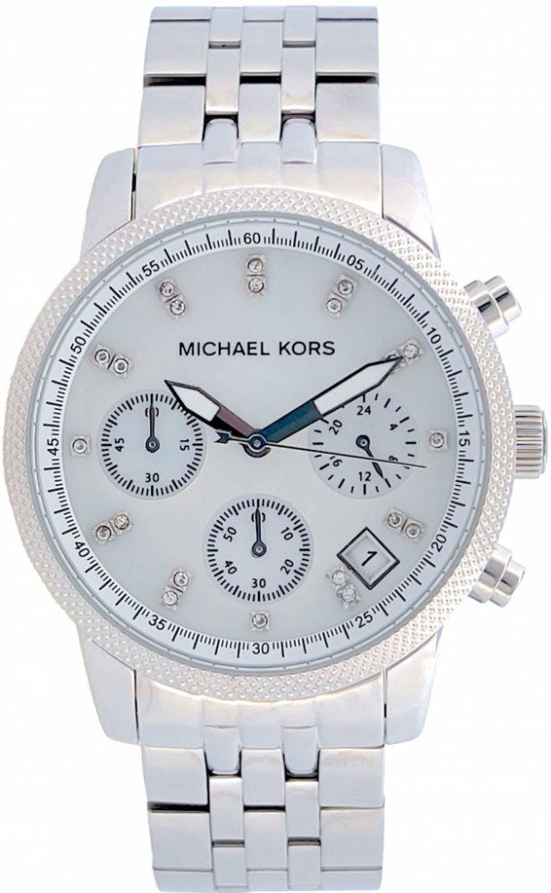 Michael Kors analogové ocel elegantní dámské bateriové - quartz pro potápění (100+ m) 36.0 mm ocel 36 x 43 x 12 mm 100 m bateriové 130 g minerální 17.78 cm krystaly Ritz kulaté stříbrná bílá skládací spona 1.8 cm na ruku stříbrná ocel 3.6 cm malé ocel 18.0 mm 3 s nenáročnou údržbou (quartz) bez chytrých funkcí
