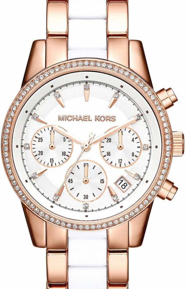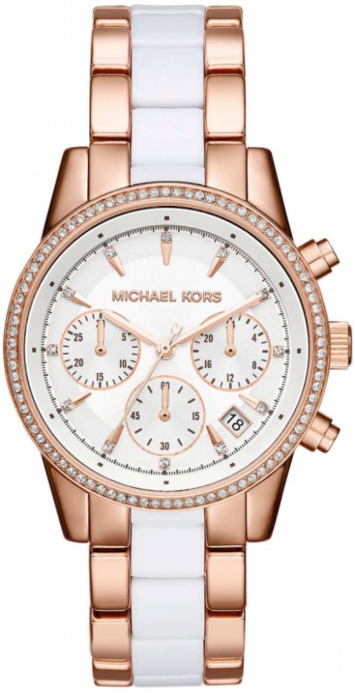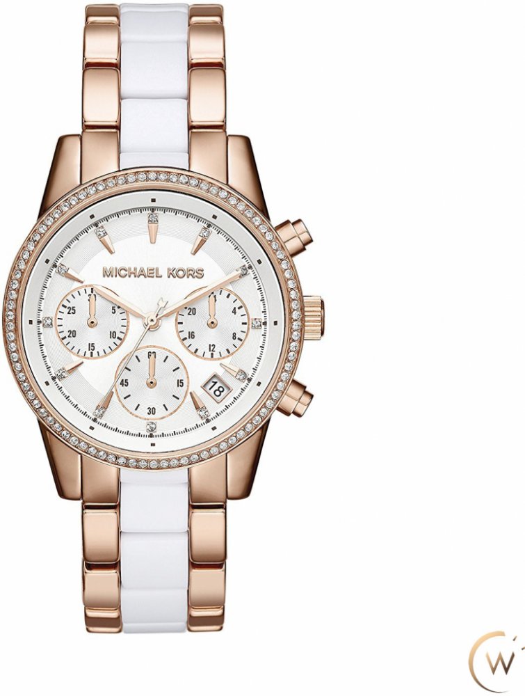 Michael Kors analogové ocel ocel 50 m bateriové 100 g minerální elegantní dámské bateriové - quartz Ritz kulaté vícebarevná bílá motýlková spona 1.8 cm