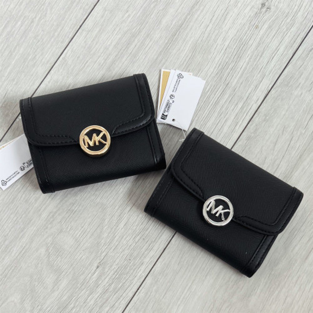 Michael Kors peněženka vhodná i do malých crossbody praktický model na mince, papírové peníze i karty rozměr: 12x9cm barva: černá se stříbrným i se zlatým kováním materiál: umělá nepravá kůže
