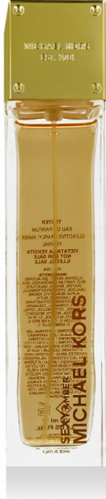 Parfemovaná voda pro ženy Michael Kors Sexy Amber překládá luxusní vonný nástroj pro sebevědomé a temperamentní dámy. Vůně, která si podmaní mužské pokolení a okouzlí jakoukoliv společnost. Prožijte vonný zážitek, v jehož moci se budete cítit svěže, volně a smyslně. Michael Kors Sexy Amber je parfemovaná voda pro ženy prezentující se svými hřejivými a teplými tóny. Hlavním představitelem je bezpochyby jantar, dále pak bílé květy nebo santalové dřevo. Vaše tělo může doslova zářit v podání aromatického lektvaru, který má dlouhou působnost a vysokou intenzitu. Flakónek parfemované vody pro ženy Michael Kors Sexy Amber je tvořen ve stejném duchu, jako ostatní vůně této značky. Vysoký hranatý tvar s průhledným tělem, jež vám umožňuje pohled na skrytou esenci. Je nejvyšší čas říci běžnému standardu ne. Aplikujte na své tělo pouze skutečnou a jasně identifikovatelnou kvalitu. Co je tester? Testery se běžně používají v klasických parfumeriích, aby si zákazníci mohli vyzkoušet, jak parfém voní. Protože tedy tester neslouží pro přímý prodej koncovým zákazníkům, není jeho provedení tak barevné a honosné. Tester se od klasického produktu liší pouze tím, že bývá zabalen v bílé krabičce bez potisku a většinou nemívá ochranný vršek rozprašovače. Občas na něm bývá nálepka s textem Tester, případně Demonstration. Vůně je ovšem zcela shodná s klasickým balením a není tedy ani silnější, ani slabší. Chcete-li vůní pro sebe a krabičku tedy nepotřebujete, je tester ideální volbou. V případě, že vůni máte pro někoho jako dárek, je vhodnější klasické balení.