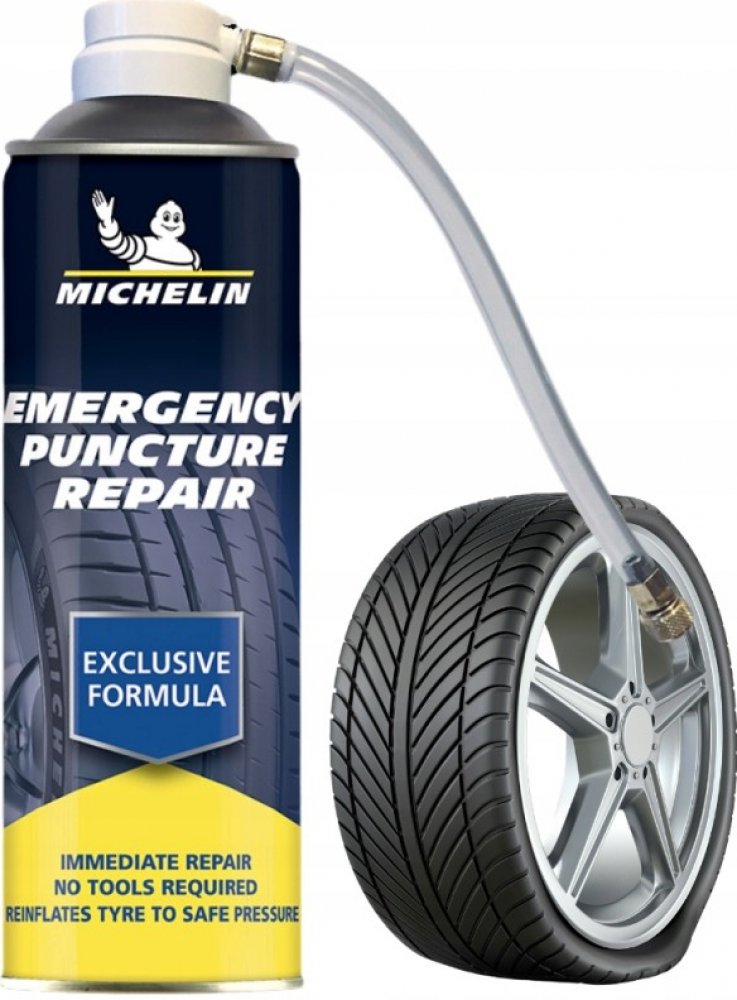 Nouzová oprava propíchnuté pneumatiky MICHELIN umožňuje řidičům pokračovat v cestě v případě zastavení kvůli propíchnutí a dílnám dává větší šanci na trvalou opravu pneumatiky. Oprava nouzového propíchnutí Michelin může opravit některé propíchnutí a poté pneumatiku znovu nafouknout na tlak 0,8 baru – částku, kterou Michelin označuje jako „bezpečný tlak“. Plechovka na opravu nouzového propíchnutí Michelin o objemu 500 ml je vhodná pro použití ve všech pneumatikách do velikosti 245/45 R17 a nevyžaduje žádné nářadí ani samostatný kompresor. Vlastnosti: Řidiči nikdy nevědí, kdy došlo k propíchnutí pneumatiky; tento produkt je stále účinný, i když propíchnutí nějakou dobu nedetekujete. Čím déle jezdíte na propíchnuté pneumatice, tím větší je poškození pneumatiky, ale tento produkt účinně opravuje větší díry. S Nouzovou opravou propíchnuté Michelin máte dvakrát více času ve srovnání s předními konkurenčními produkty,odhalit problém a přesto dosáhnout:1) dočasnou opravu/utěsnění propíchnutí 2) opětovné nafouknutí pneumatiky na bezpečný jízdní tlak (0,8 baru) ) Výhody:Snadné použití: jedná se o jednokrokové řešení; nejsou potřeba žádné nástroje,není třeba kolo sundávat.
