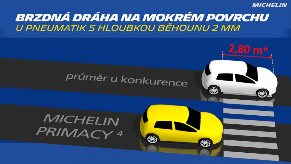Vynikající brzdné vlastnosti na mokrém povrchu od prvního (2) do posledního kilometru díky technologiím EverGrip. Díky novému dezénu zaměřenému na bezpečnost si pneumatika MICHELIN Primacy4 udržuje maximální schopnost odvádět vodu pryč z povrchu pneumatiky, i když se zbývající hloubka běhounu blíží k zákonem stanovenému limitu opotřebení. Nový dezén poskytuje o 22 % více prořezaných ploch pro efektivnější odvod vody. Díky nejnovější generaci vysokovýkonné směsi pryže zaručuje pneumatika MICHELIN Primacy4 výjimečné brzdné výkony na mokrém povrchu od prvního okamžiku až do jejího opotřebení(1), a přitom si uchovává maximální možnou životnost. Maximální kontaktní plocha s vozovkou a rovnoměrně rozložené síly při akceleraci, brzdění a zatáčení – delší životnost bez kompromisů. Pro snazší sledování stavu pneumatiky MICHELIN Primacy 4 se na běhounu nachází indikátor opotřebení, který vám pomůže rozpoznat, kdy je třeba vaši pneumatiku vyměnit.