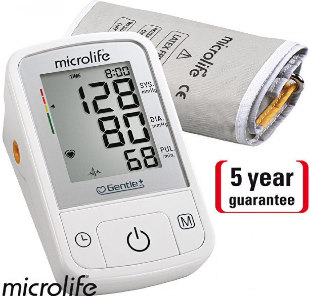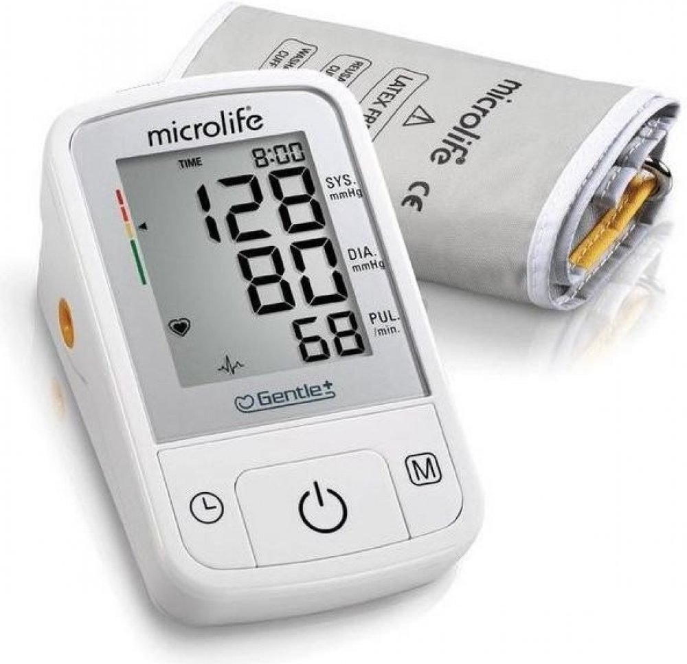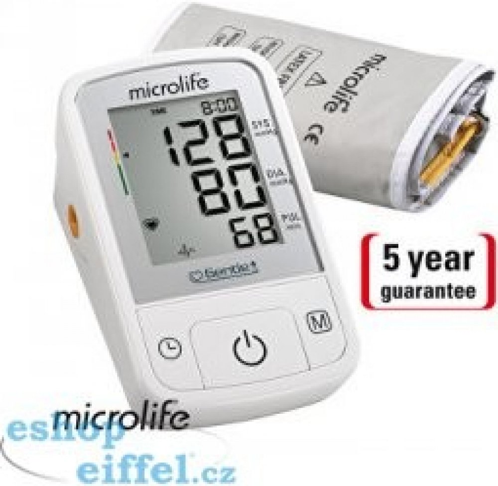 Digitální tlakoměr Microlife BP A2 Basic s kónickou manžetou na rameno pro spolehlivé měření krevního tlaku. Gentle+ technologie pro rychlé, pohodlné a přesné měření s jemným nafukováním a vyfukovaním manžety a patentovanou PAD technologií pro včasné rozpoznání arytmie.Spolehlivé měření krevního tlaku a pulzu.