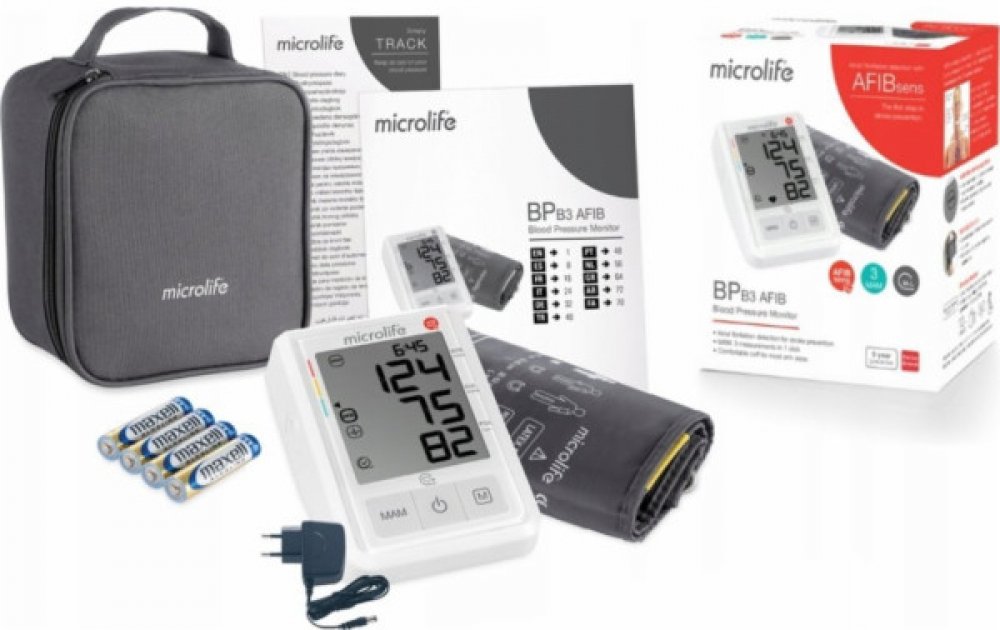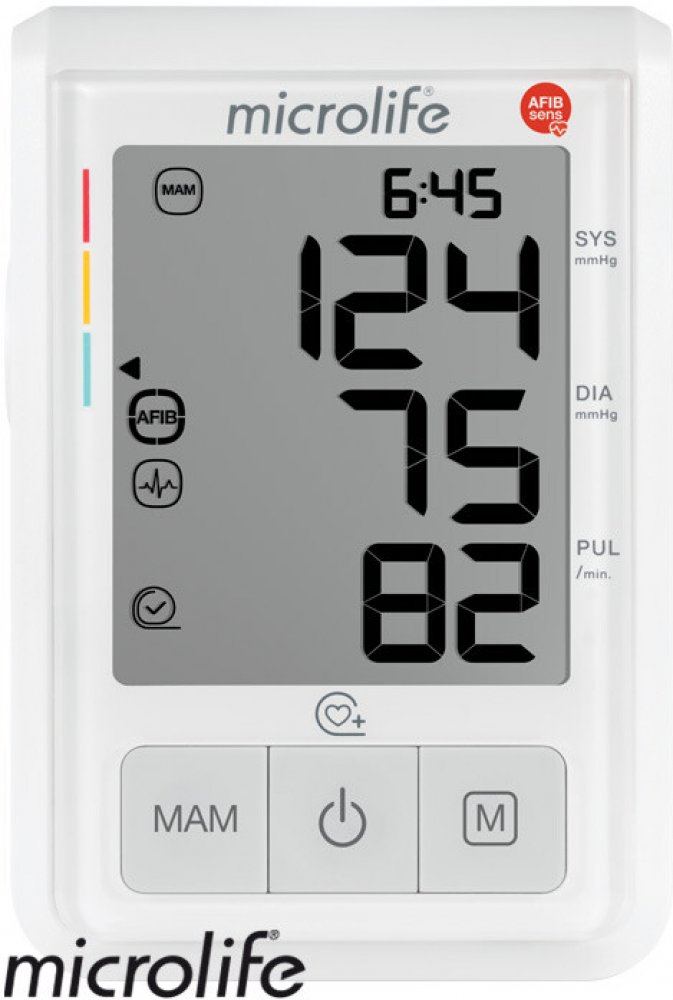 BP B3 AFIB je základní model nové generace tlakoměrů Microlife, který umožňuje detekci atriální (předsíňové) fibrilace během měření krevního tlaku doma. AF je jednou z nejčastějších příčin mozkové příhody, ale často ji nelze rozpoznat. BP B3 AFIB je klinicky validován pro několik speciální skupiny pacientů a proto poskytuje přesné měření krevního tlaku téměř pro každého.