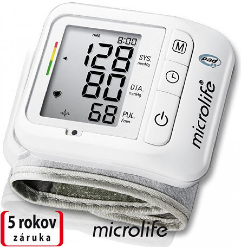 Microlife bílá bateriové 60 měření na zápěstí pro cestování (na baterie) pro detekci arytmií/ECG oscilometrické automatické 20 - 280 mmHg 124 g 73 x 66 x 38 mm pouze lokální paměť integrovaná bez hadičky