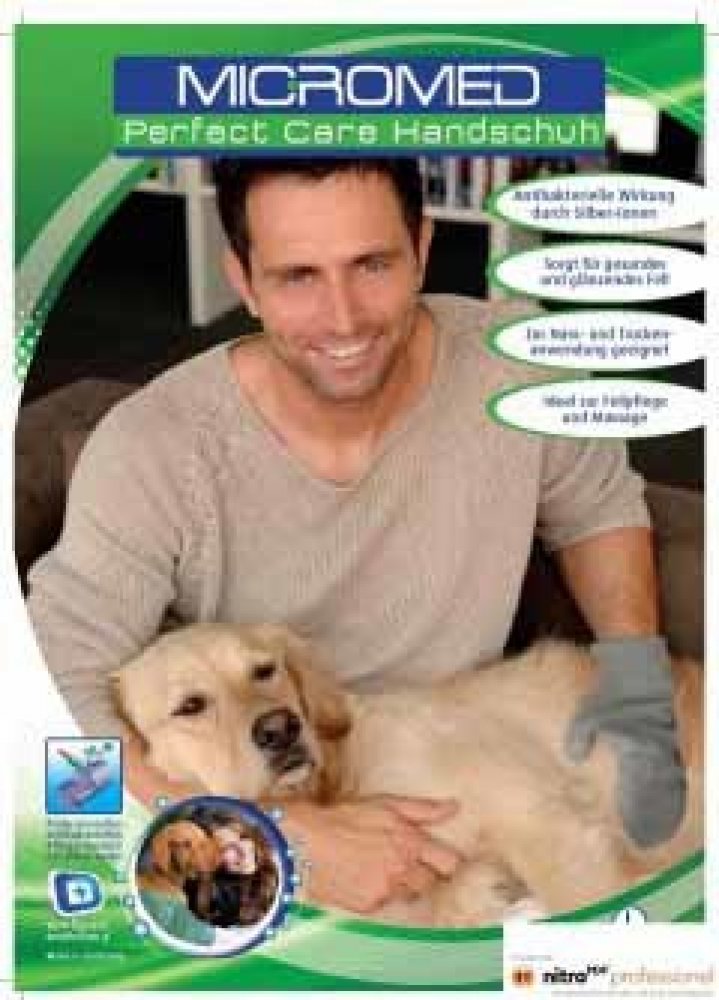 Ošetřující rukavice Micromed pro antibakteriální čištění a jako podpora při hojení jizev. Díky aktivním iontům stříbra dochází k odstranění bakterií, kvasinek a plísní na 99,97%!