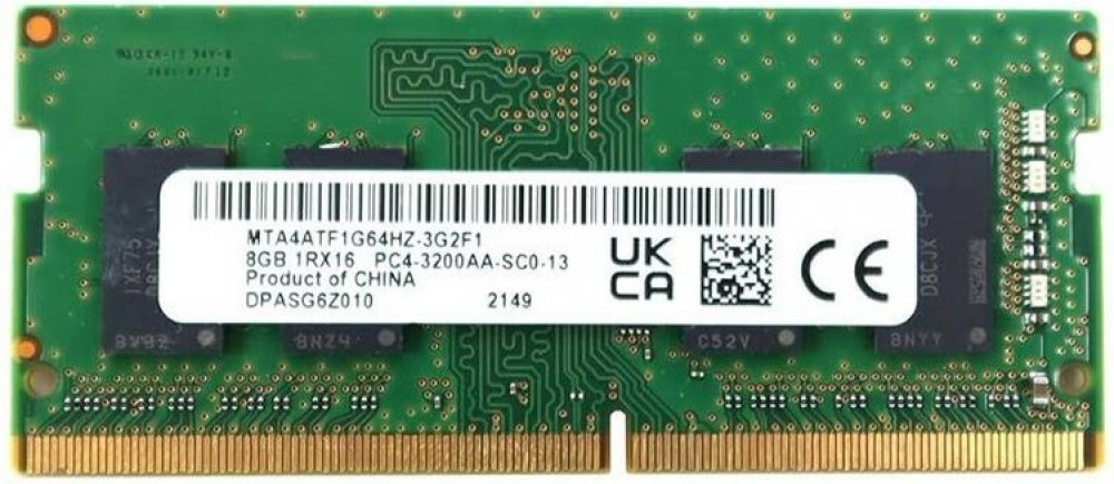 Model: Micron SODIMM DDR4 8GB 1Rx16 PC4-3200AA-CS0-13 3200MHz CL22 MTA4ATF1G64HZ-3G2F1