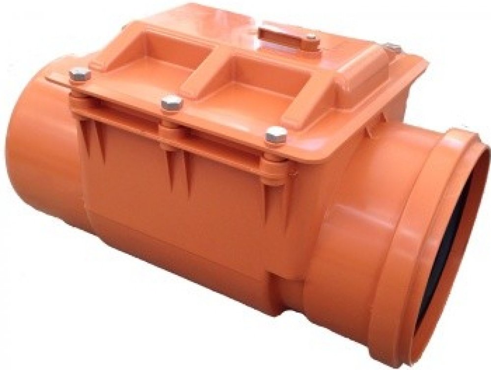 Zpětná klapka - pro instalaci ve vodorovném směru Ochrana během přívalových dešťů. Jednouzávěrový systém zabraňuje zpětným průtokům. Je určen k odtoku běžné komunální vody Zpětný blok - uzavíraný ručně - bez bez příplatku ve zpětné klapce - zvlášť vhodný během delší dovolené nebo rekonstrukce