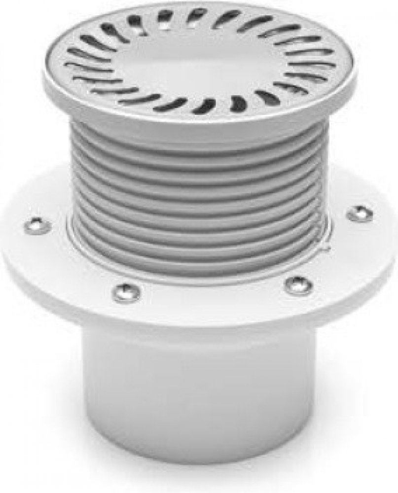 Podlahová vpusť se sifonem s vodní hladinou a přírubou . Příruba slouží k vodotěsnému spojení izolační fólie s podlahovou vpustí . Pro vnitřní použití, zatížení 300 kg, odolnost do 90°
