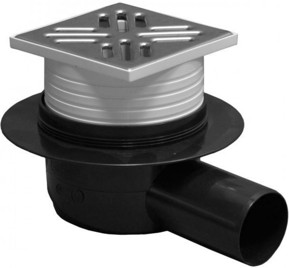 Podlahová vpusť boční D50 , sifon s vodní hladinou, s límcem, nerez, třída zatížení K3 (300 kg). Suchá klapka pro venkovní provedení na požádání.