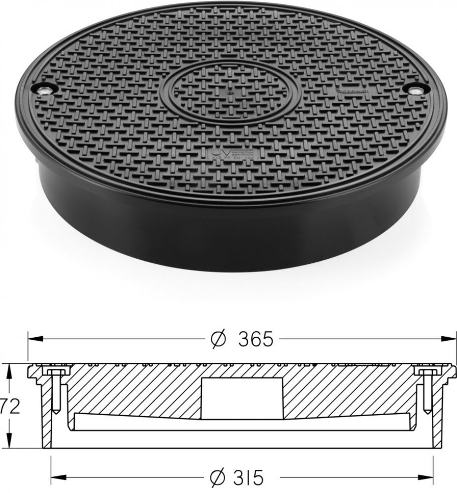 MIDAS Poklop plastový A15 se zátěží do 7,5t (75 kN), DN 315 (pouze na hladkou rouru) p3618