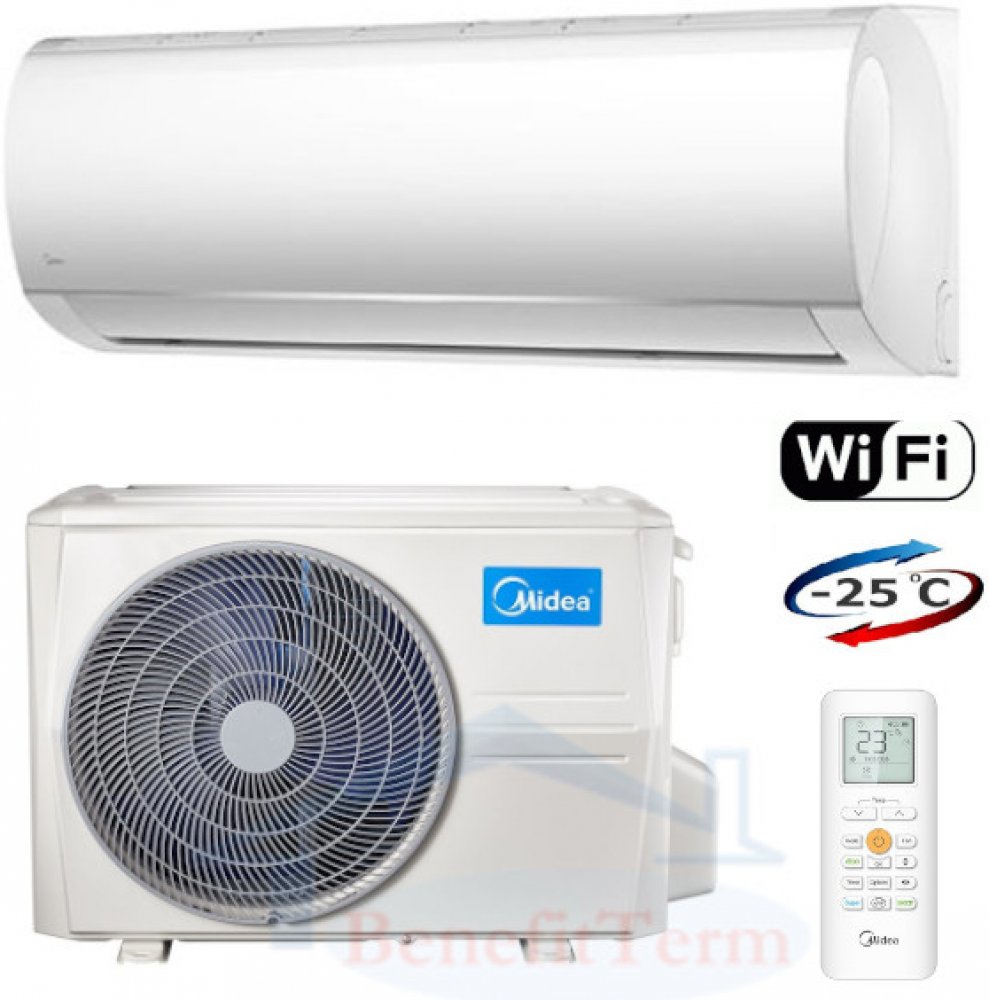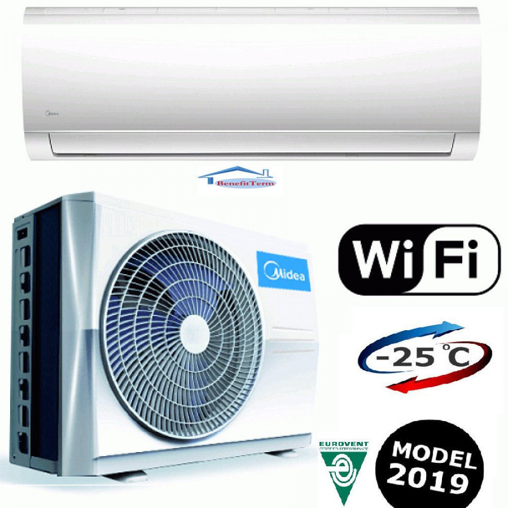 Splitová nástěnná klimatizace značky Midea, základní model Blanc 7,1 kW, energetická třída A++/A+, hlučnost vnitřní jednotky 33 dB a venkovní jednotky 60 dB. Funkce: zabudované WiFi ovládání, temperování na 8°C, tichý režim, ovládání lamely svisle i vodorovně, rychlé chlazení a topení, auto-restart, samočištění, odvlhčování. Invertorová technologie, úsporné chladivo R32, v zimě topí a v létě chladí. Možno zakoupit i s montáží po celé ČR.