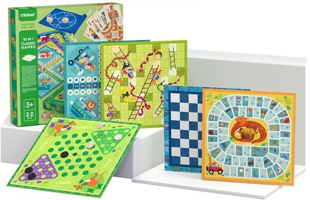 32 různých dekových, karetních a šachových her pro děti 32 druhů her, více obtížností, různé způsoby hraní, rozvíjí logické myšlení, matematické dovednosti, koncentrace, sociálních dovednosti, pro všechny věkové kategorie, vhodné od 3 let.