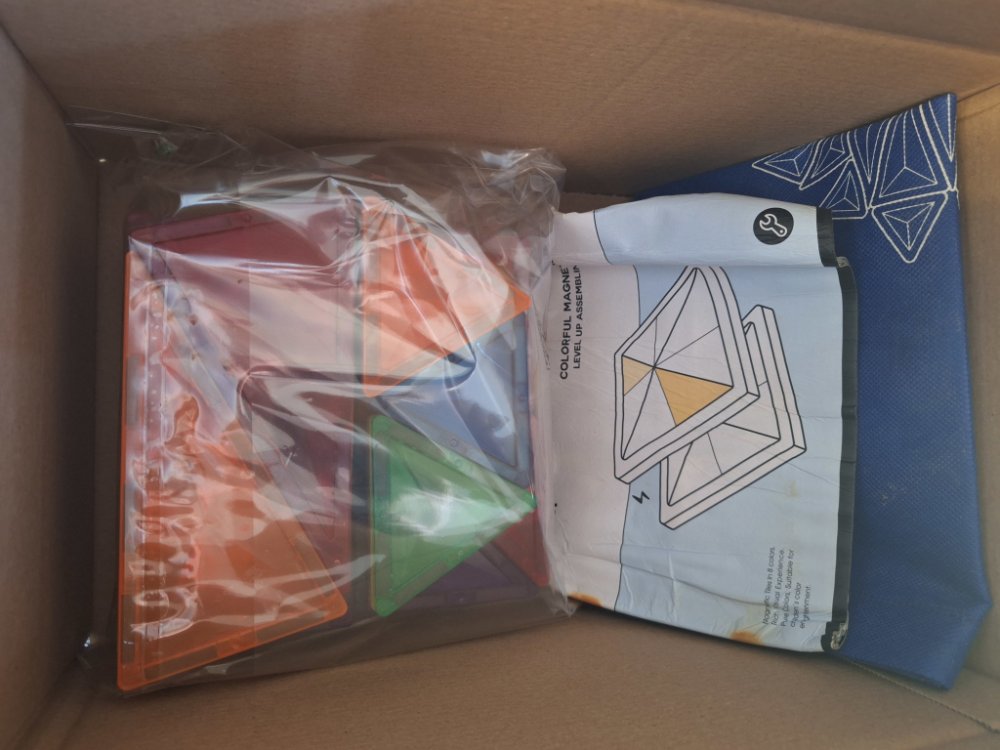 Balení obsahuje: 60 ks dílků (6x trojúhelník velký, 12x trojúhelník malý, 12x úhel 90°, 20x čtverec, 10x speciální dílkynávod a sáček na ukládání dílků.