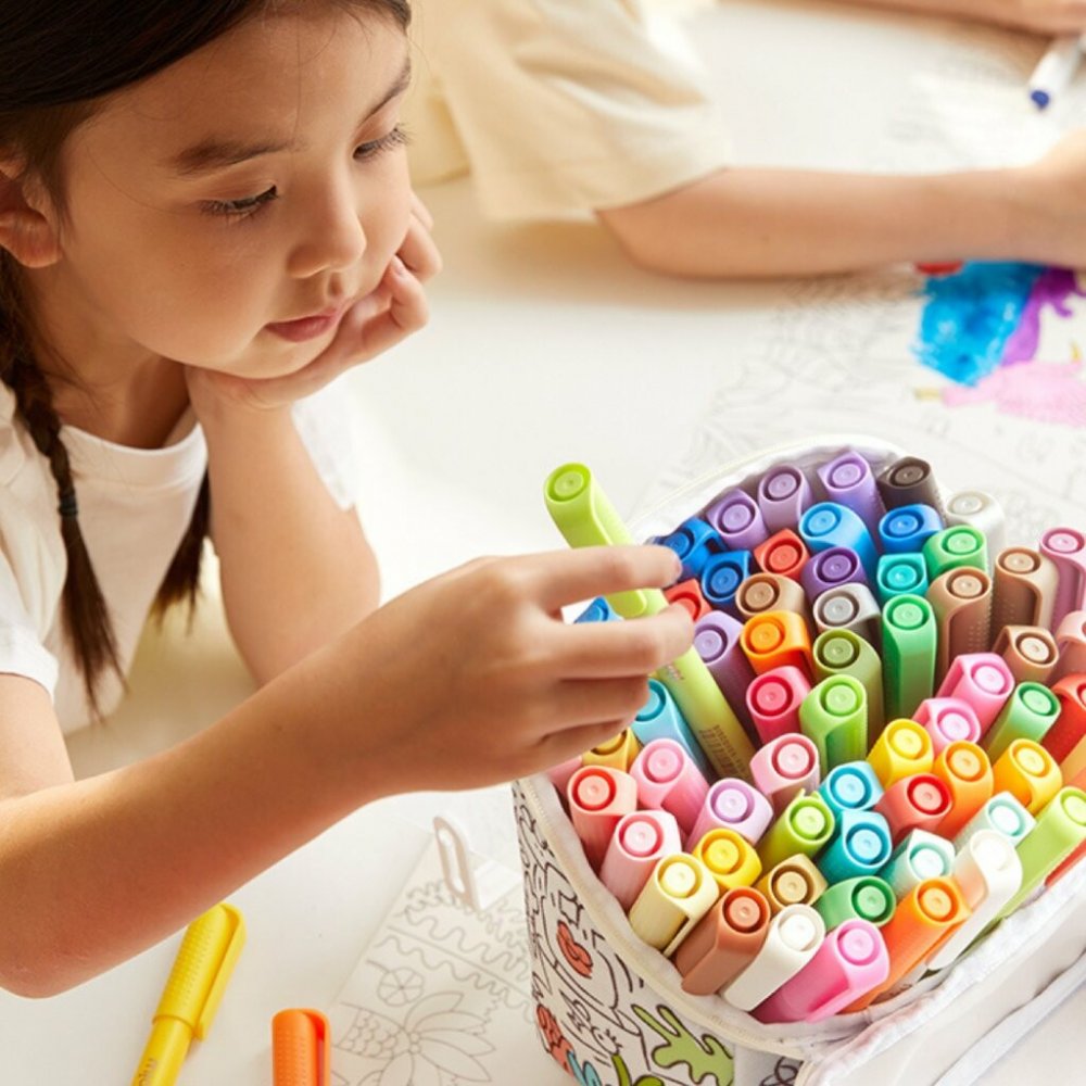 Popisovače v krásných jasných barvách s jemným hrotem pro perfektní a přesné tahy.Vhodné na papír, dřevo, sklo, kámen. Složení na vodní bázi, netoxické, bez zápachu.Z hladkých povrchů snadno smývatelné.Popisovače jsou uložené v praktickém látkovém pouzdře pro snadné skladování. Barevné popisovače pro nejrůznější použití. Díky plnému krytí, jsou vhodné na malování kamínků i výrobků ze dřeva.Krásně drží i na skle, které poté snadno umyjete.Popisovače jsou netoxické a snadno se smývají z hladkých povrchů.Mají kulatý tvar s výstupky po těle popisovače pro snadné držení v dětské ruce.Díky ztenčujícímu se tvaru hrotu lze dělat tenké i tlusté linky.Tyto fixy jsou přímo stvořené k malování či kreslení. Vyznačují se krásně sytými barvami.Balení obsahuje 60 kusů různých barev viz galerie.Velikost popisovače: 14 cm x 1,3 cmRozměry balení: 15 cm x 15,5 cm x 10 cmVhodné pro děti od 3 let.